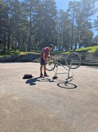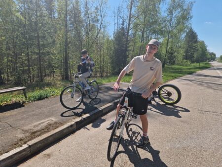 Vasariška gegužės 12 dienos popietė. Kad ir negausus būrys, bet tradiciniam dviračių žygiui į Viliošius užtenka ir tiek J. Šiųmetinis – jau penktasis toks… Įprastas maršrutas Mums jau pažįstamais keliais buvo itin intensyvus. Dėl rytojaus ralio lenktynių kartas nuo karto tekdavo „paragauti“ kelio dulkių automobilininkų, kurie išbandė trasą. Bet tai neišmušė Mūsų iš vėžių nuo pagrindinio tikslo – Viliošių kavinės. Ten tradiciškai pasistiprinome. Pamatėme, kad įprastos atrakcijos kavinės teritorijoje Mums tapo jau per mažos, tad nutarėme, kad reikia keliauti namo. Tik šį kartą – asfaltuota danga. Per šiek tiek daugiau nei 3 valandas, su ,„pastovėjimais“, įveikėme 17,3 km. Atrodo nedaug, bet artėjančios vasaros signalai davė savo… Bet visą tai atpirks ateities prisiminimams išlikusios nuotraukos, kurių keletu dalinamės ir su Jumis…